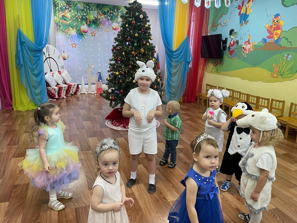 23 декабря в нашем детском саду прошёл самый первый новогодний утренник в первой младшей группе. Малыши пришли нарядные, превратившись в весёлых зайчиков, красивых снежинок. Все закружились в новогоднем хороводе. Малыши веселились у нарядной ёлочки с красавицей Снегурочкой, шустрым Зайчонком,хитрой лисичкой и с веселым Снеговиком. Они водили с ними хороводы, играли в снежки, танцевали с погремушками. Малыши со снегурочкой поиграли в волшебную игру «Ёлочка свети!». Помогли Снегурочке зажечь огоньки на новогодней, праздничной елочке. Она засияла разноцветными огнями. Вместе с зайчиком наши маленькие зайчата отплясывали весёлый танец. Утренник прошёл в теплой сказочной атмосфере.