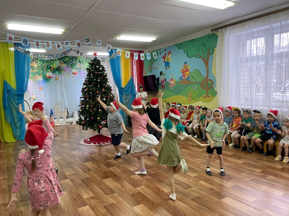 Снова зазвучали веселые песни, закружились в танце малыши, и детские голоса наполнили музыкальный зал радостным смехом. Конечно же, не обошлось без любимого хоровода вокруг нашей зеленой красавицы! Дети с удовольствием водили его, вспоминая все новогодние чудеса.